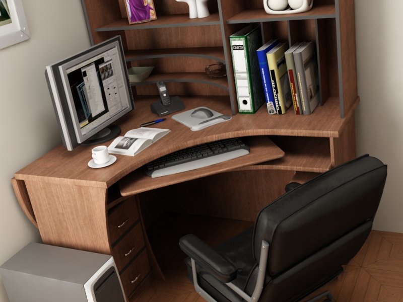 Está bastante bien y una típica imagen mona de escritorio. Pero, nunca comprendo porque la gente que modela un monitor, se le olvida algo tan obvio (a fin de cuentas, seguro que se ha pasado horas frente este). Como que un monitor emite luz e ilumina.