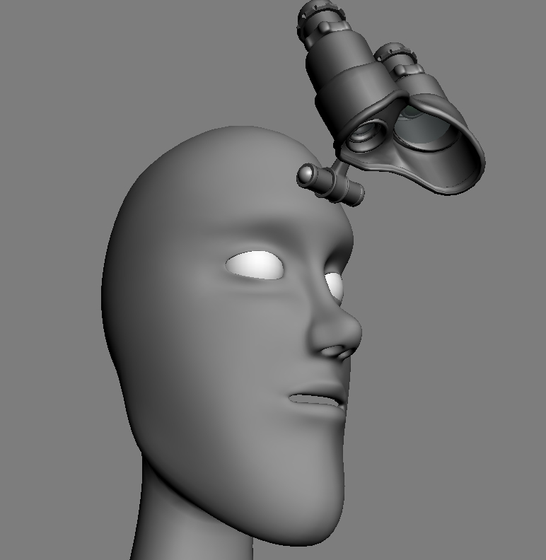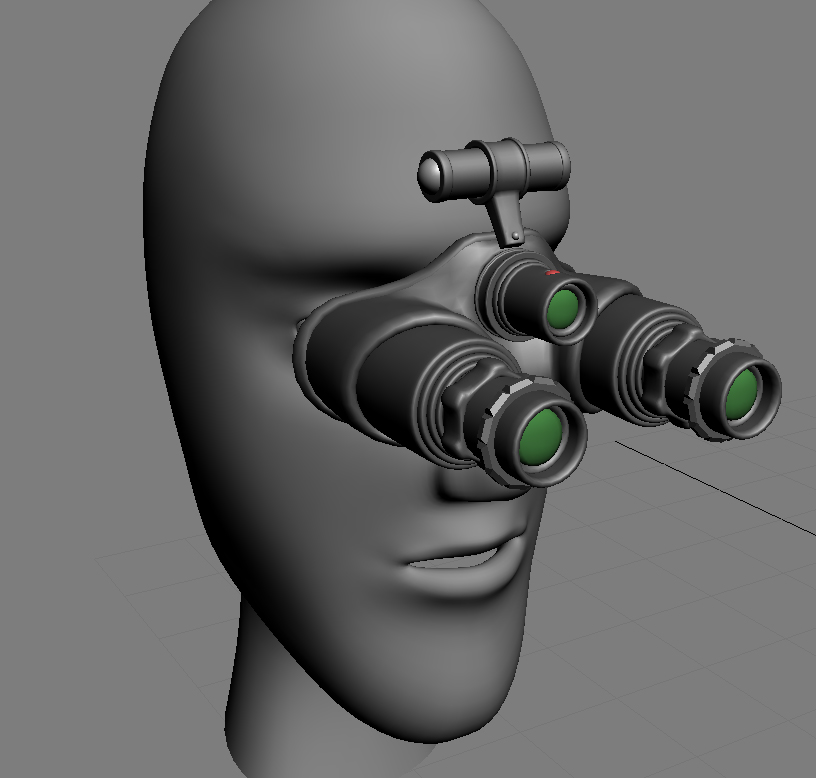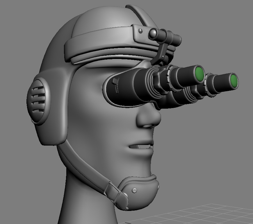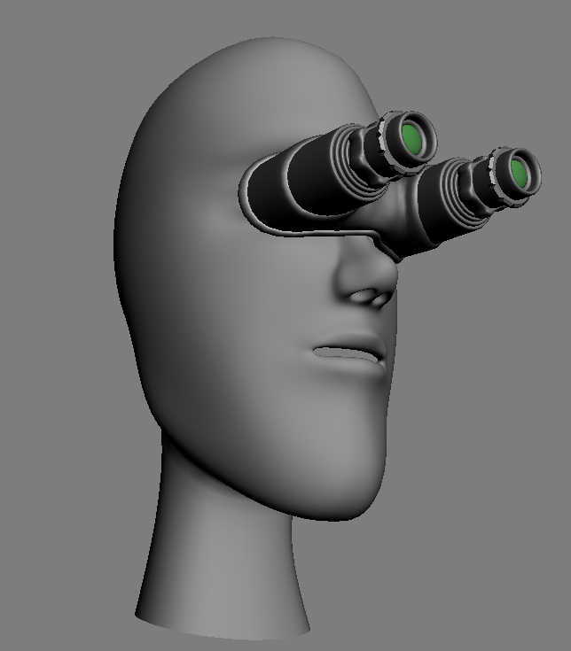 Acabo de empezar la cabeza, y posiblemente antes de seguir con el cuerpo haga el Rig facial y el de las gafas, tendré que buscar instrucciones para manejo de gafas de visión nocturna. Llevara un casco así que, posiblemente no le haga ni las orejas.