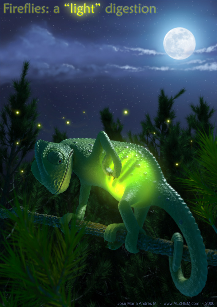 Daelon: gracias si es original mola, porque es justo lo que buscaba. Demasiada infoarquitectura hay por el mundo. Rockser: pues lo que he usado no es más que una luz omni dentro del camaleón y el Vray. El material simula un efecto s.
