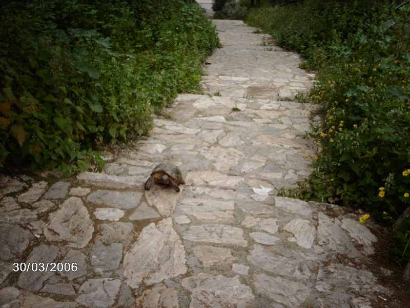Si, me encontré dos tortugas. Una en el cementerio al lado de la acrópolis, y la otra en el monte dónde está el observatorio (habían un par de caballos blancos también, aunque bastante desnutridos).