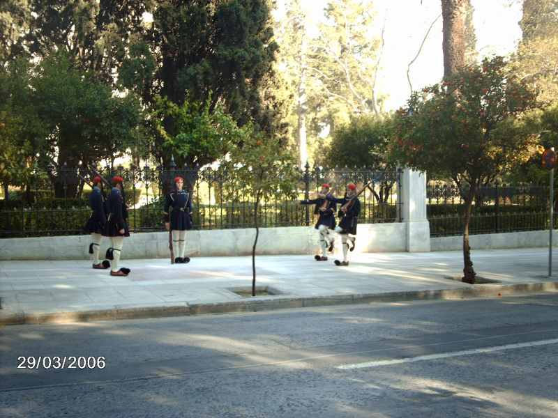 Los tíos que veis con el uniforme y las armas, es la guardia real. Una pasada de desfilada.