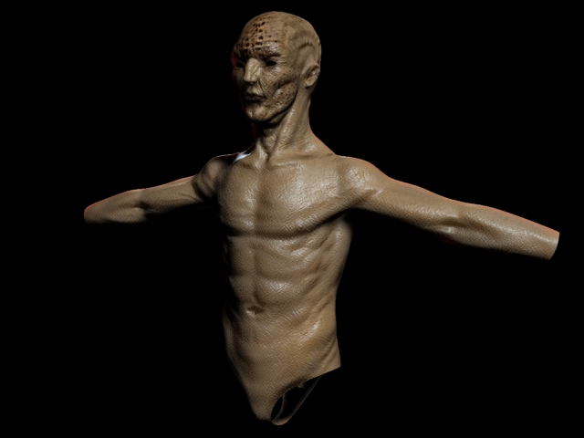 Vaya, el materialmeparece genial, la sproporciones del personaje no me convencen del todo y la textura la veo un poco simétrica, pero fastidiar, el detalle que le has sacado es muy bueno, ánimo, y enhorabuena.