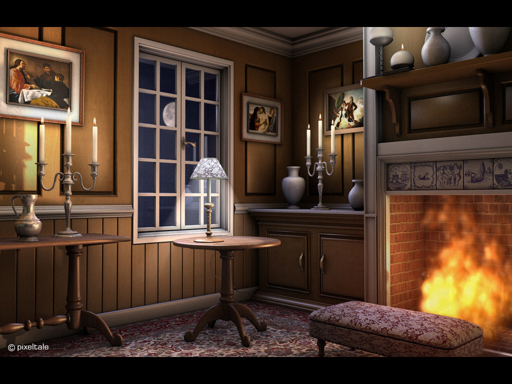 Hablando criticamente, la habitación es demasiado 3d, demasiado perfecta, texturas demasiado limpias, pero lqo más desentona es el fuego.