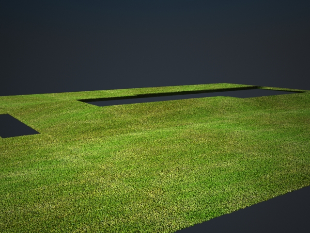 Hola, me parece bien logrado el césped, adelante cuenta más sobre cómo lo hiciste, me imagino que con un Vray displace.