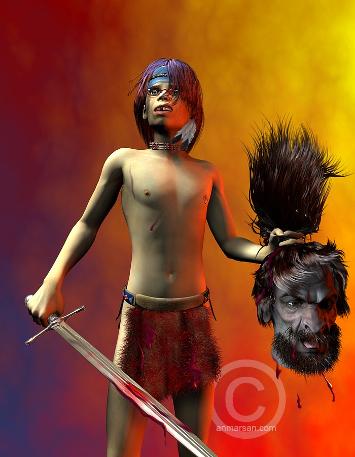 Los pelos de la faldilla, barba y bigote se hicieron con un plugin, y el pelo de la cabeza en la mano con otro plugin diferente de c4d.
