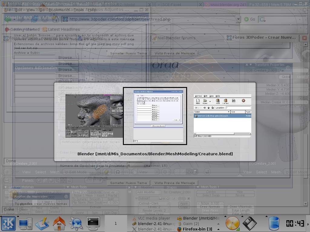 No me aguante las ganas. Blender 2.41 dynamic, visto en plena acción en KDE 3.5 con XGL activado. Sus opiniones por favor.