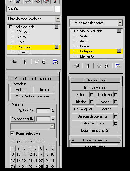 El primero es para malla editable y el segundo para malla poligonal editable.