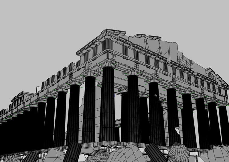 Cojonudo, pero a mí me ha salido el 3d según lo he visto. Yo también uso XSI y maldigo cada día. Para mí, se nota que te curraste la parte de abajo (de los capiteles para abajo) y luego parece, es mi impresión te entró la pereza en la parte del friso. En cualquier caso, (y a mí me joden las críticas más que ha nadie) el, Skyline tiene recortes o bien demasiado simples, o tu imagen de rotoscopia esta a muy baja resolución, o no sé. De hecho, la imagen que has presentado está en PAL (que no te habría costado mucho sacarla HDTV) en cualquier caso, es una obra de arte y como creo que no has modelado las columnas una a una, aunque si se ve una pesada labor de Shading (parece) yo creo que por un poco de esfuerzo más (de modelado) en la parte del friso podrías haber dado la medalla de oro y más opciones de cámara para ti.