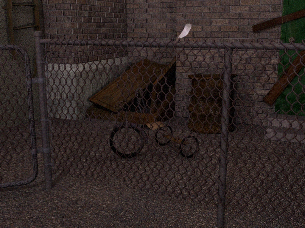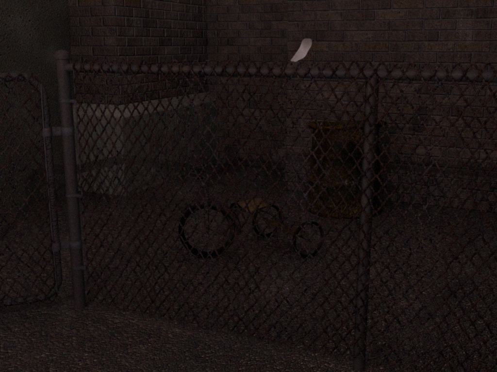 Elcuervo, aunque la escena me parece correcta, la iluminación la veo muy plana, carece completamente de contrastes. Si te fijas en trabajos de iluminación nocturna o con poca luz (la ronda nocturna de Rembrandt, por poner un ejemplo de los buenos) casi siempre hay una fuente de luz, aunque sea tenue como la luna, que sirve para ayudar a sacar los volúmenes de los elementos de la composición. En este caso yo pondría una luz sobre la puerta que se ve a la derecha, la clásica luz en la puerta trasera de un garito que estamos acostumbrados a ver en la películas de cine negro. Otra posibilidad es colocar (puede estar fuera de plano) un neón tipo anuncio, así puedes utilizar luz coloreada para darle más dramatismo a la escena.