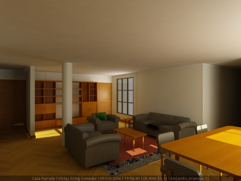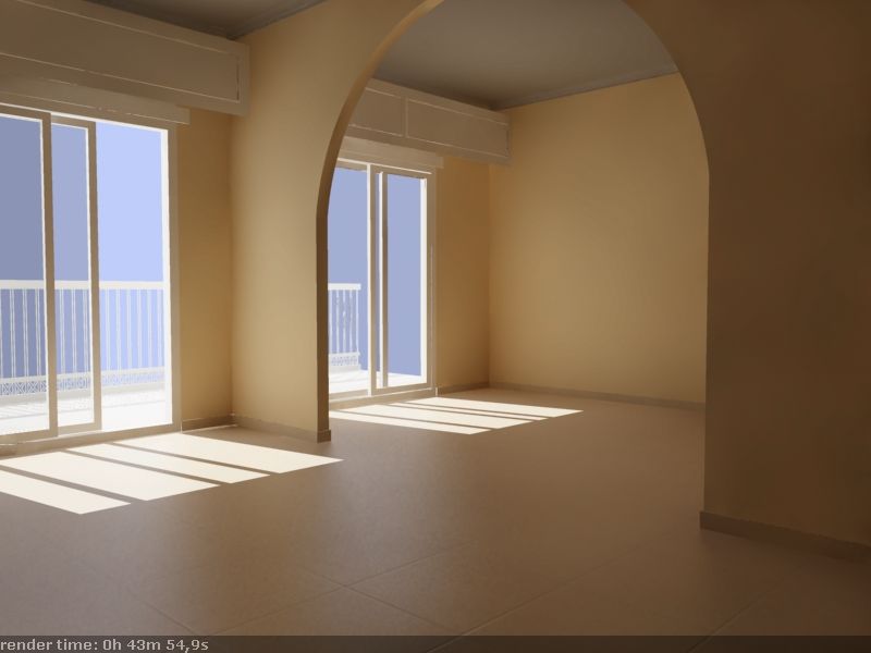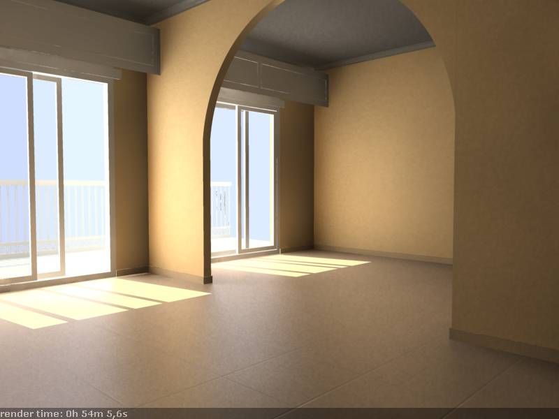 Estuve haciendo unas pruebas de iluminación interior con Vray siguiendo un tutorial de un foro (3dsymax) que me pareció muy didáctico. La escena está iluminada con un target spot, mult. A 1 y una luz Vray que abarca todas las aberturas. No logro evitar el quemado de la imagen de fondo y del techo, como tampoco las nubes grises que se forman en las paredes blancas, he intentado bajar el multiplicador de spot y aumentar los rebotes secundarios, pero la escena se oscurece mucho. Max y mínimo rate: -2. Gracias.