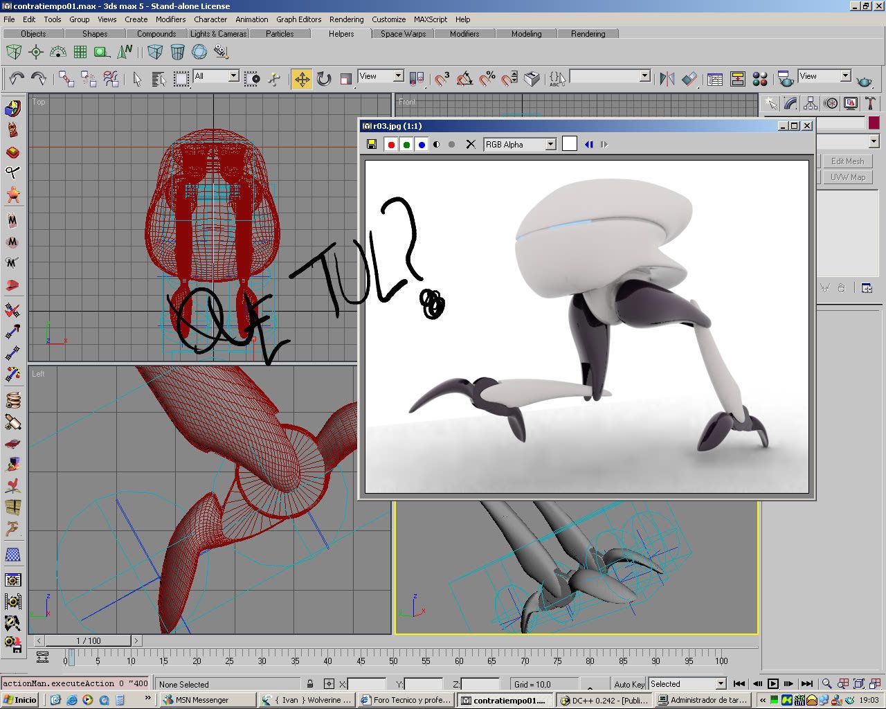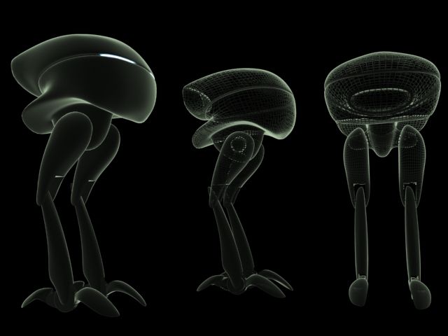 Me gusta, tiene personalidad. No obstante, encuentro un defecto en el diseño desde el punto de vista técnico: un bípedo con patas de solo dos apoyos (punta y tal n). Sería muy inestable en un desplazamiento real, por lo que yo agregaría un dedo más por lo menos en la parte frontal (algo, así como una y), para que una animación (estoy suponiendo que, con esa finalidad lo hiciste) el movimiento fuera más creíble. Saludos.