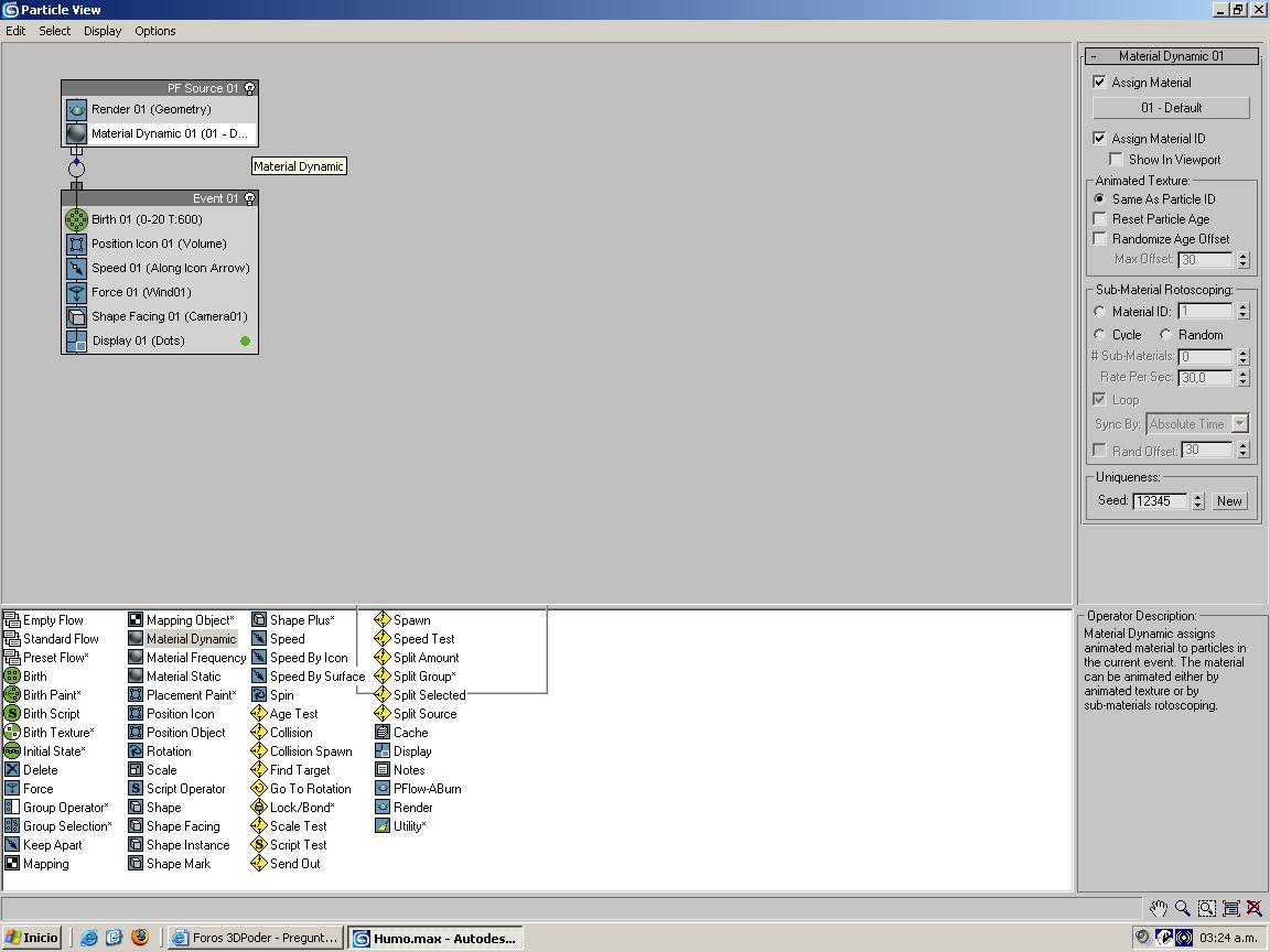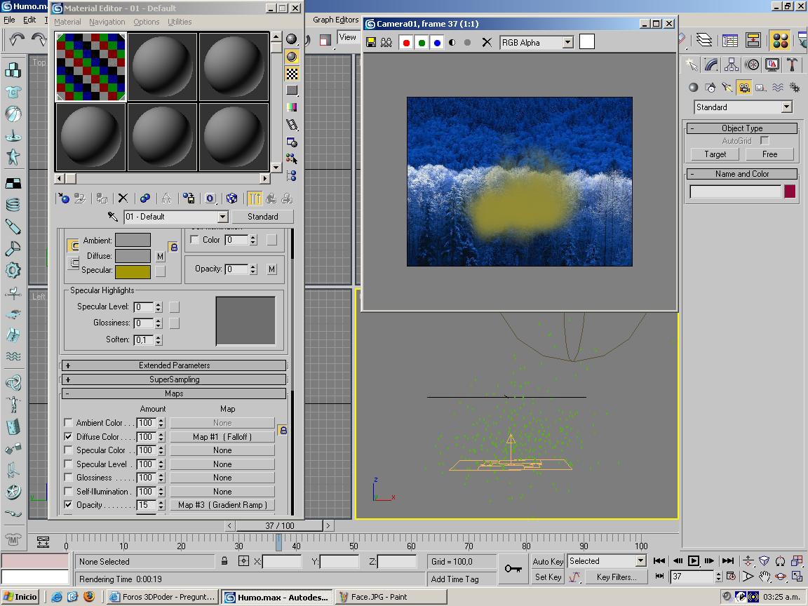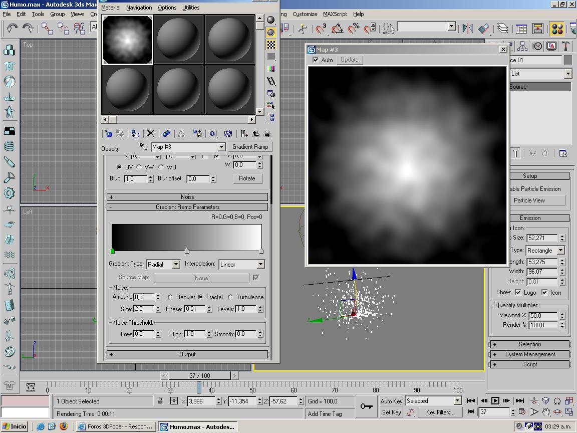 Tal vez alguno de ustedes que ya ah experimentado más con esto pueda dar algún consejo útil para este caso, obviamente no he visto todos los tutoriales, pero si he visto varios, en el caso del que trae el max lo he hecho, pero bueno como dirían algunos por aquí me sigo dando de topes, (en ese tutorial parece más gotas de agua como spray que polvo o humo).