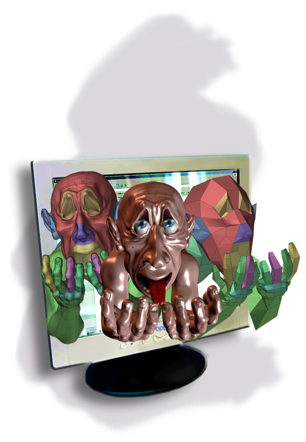 Hola. Si, la base la hice en XSI y la pasé a ZBrush para hacerle arrugas y demás. El pelo es 2d, no me ha dado tiempo de hacerlo con XSI.