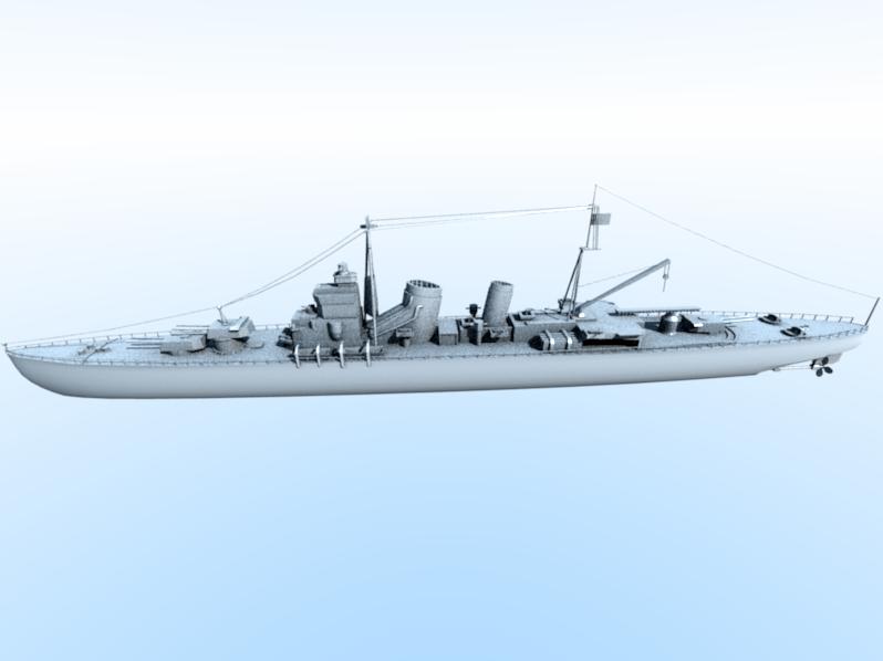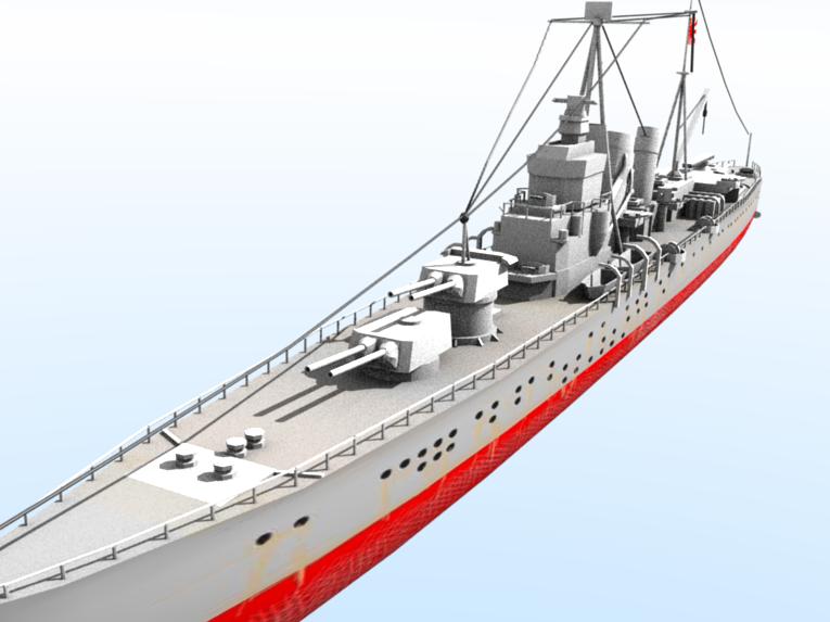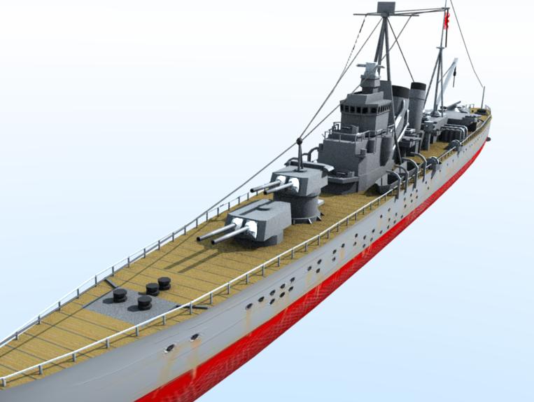 Estoy trabajando en este barco (ijn-aoba) de la 2ª guerra, hasta ahora solo he modelado, también me queda texturizarlo y aún le faltan bastantes detalles.