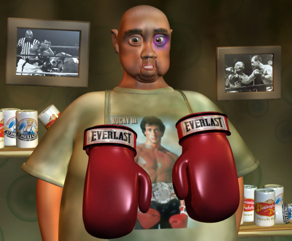 Hola, aquí os presento a una mezcla entre torrente y un boxeador dominguero. Y alguien se preguntara: y este tipo no se limpia la camisa nunca? Pues no oiga, que es su camisa de la suerte. A vale pues si eso ya te digo algo.