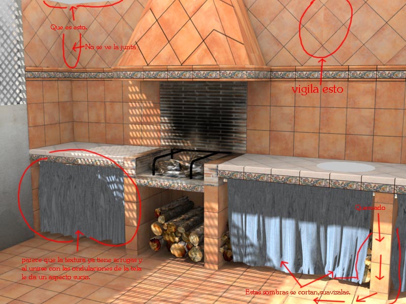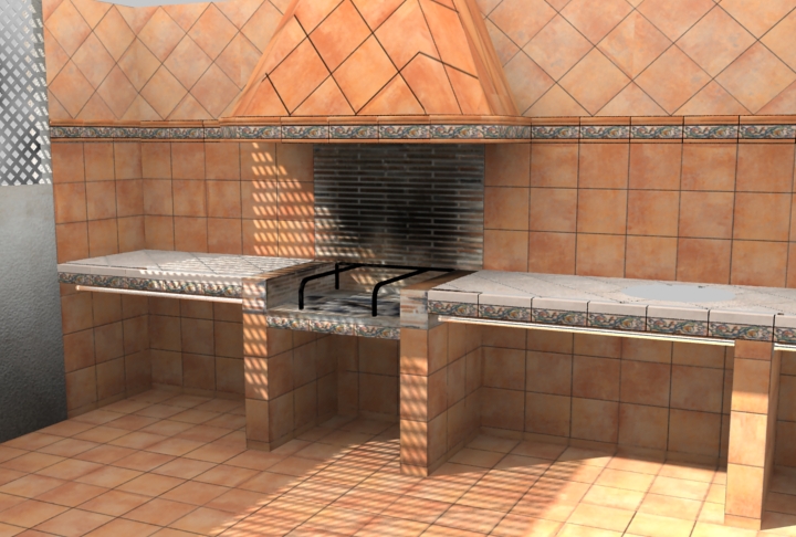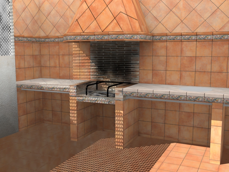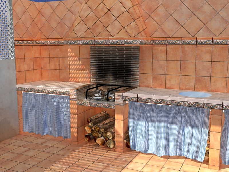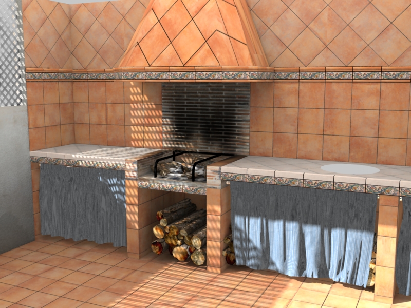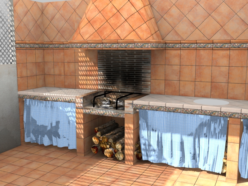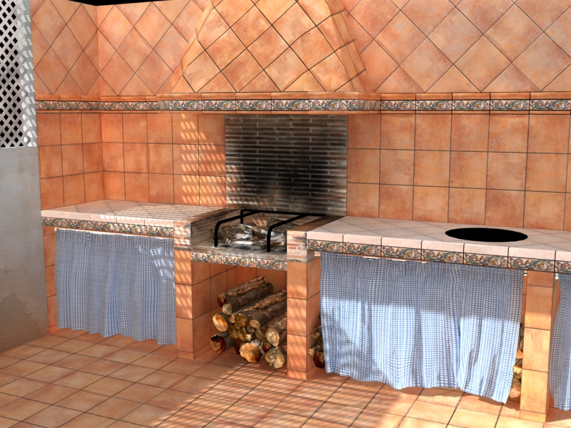 Sinopsis: la intención es que se trate de una barbacoa que está en una terraza (y más concretamente en la terraza de mi keo) y que aparte de utilizarse para frituras también se pueda hacer una paella. Más adelante conforme tenga la iluminación más o menos clara iré añadiendo el resto de los objetos que ya tengo modelados, pero que prefiero incorporar más adelante, para no marear la perdiz.