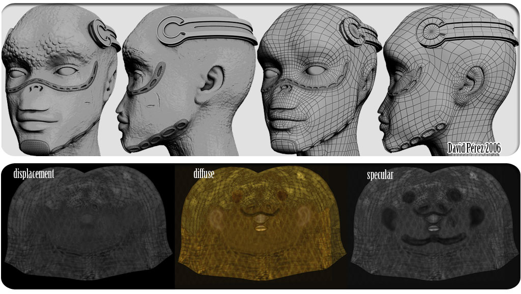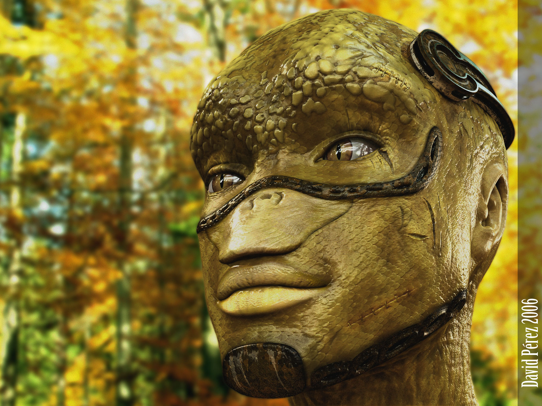 Niño, me gusta mucho este modelado y el texturizado, has trabajado muy bien los detalles, la imaginación al poder, solo una apreciación personal, los reptiles no tienen orejas(pabellón auditivo, tapa bizcocho, parabolicas), si no más bien son solo unos huecos que forman el conducto auditivo, si bien es un humanoide reptiliano, así que, pase la licencia, aunque se las hayas reducido pegándolas en toda su forma al cráneo. Saludos, y 3d.