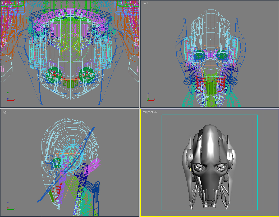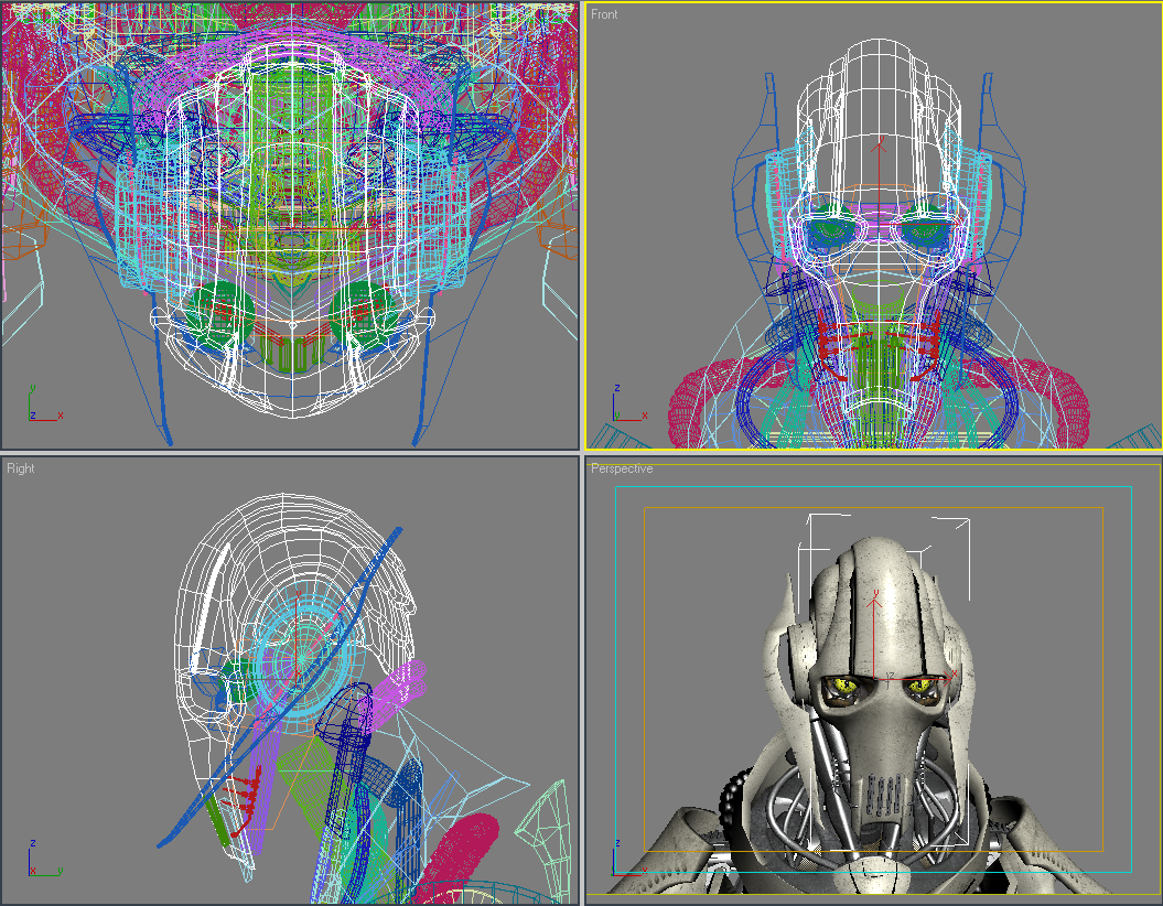 Nótese que todos los objetos tienen el mismo color, y la malla pues es la misma.