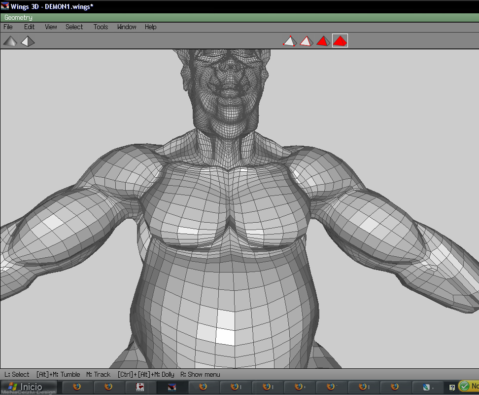 Está muy bien, Sejob, ya tienes material para hacer un cartel para los diablos de yare. Está bastante bien lograda la malla, aunque para mí gusto quitaría algunos loops para ordenar mejor las aristas, fíjate que en el tórax has sido más austero.