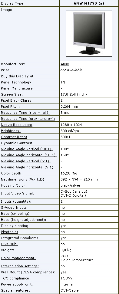 Pues resulta que tenía un amw (o algo así) de 17 con 8ms de tiempo de respuesta, la entrada dvi dejo de funcionar y después de marear la perdiz durante 2 semanas con el proveedor me lo han cambiado por un hanns. G hcd174d, le he advertido que lo quería con las mismas características que el otro (entrada dvi y 8ms) y me han dicho que lo probara y que, si no me apañaba que tenía que esperar a los otros o que me devolvían el dinero (unos 150 euros) he llegado a casa y resulta que este es de 12ms.