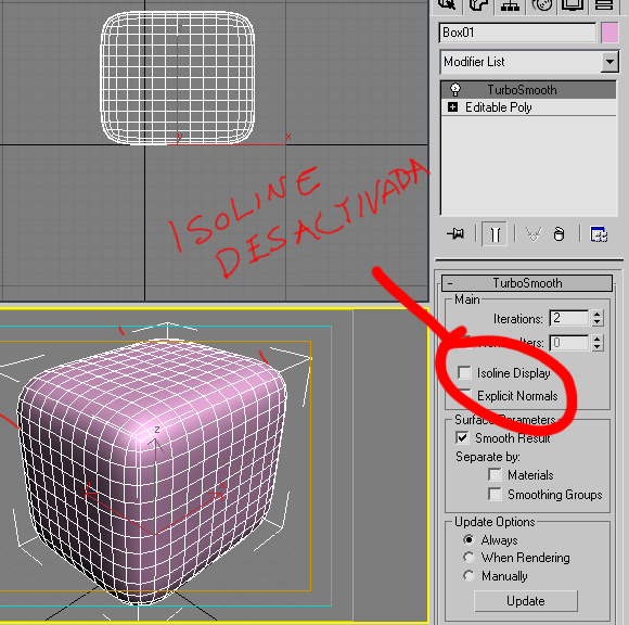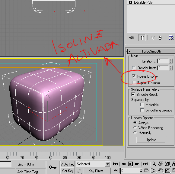 Y activa el Isoline display en el TurboSmooth para que no te moleste la subdivisión real.