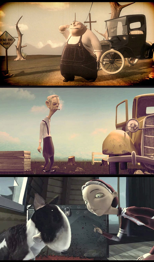 Yeah, me encanta el diseño de los personajes, el perro y clyde están genial, y los polígonos muy clásicos de los 20, bonnie me recuerda más al estilo burtom, la novia cadáver, enhorabuena, deseando que llegue noviembre para ver el resto, excelente elección de la música, guion y la trama parece que van a sorprender, que tengas muchas suerte y felicidades. Saludos, y 3d.