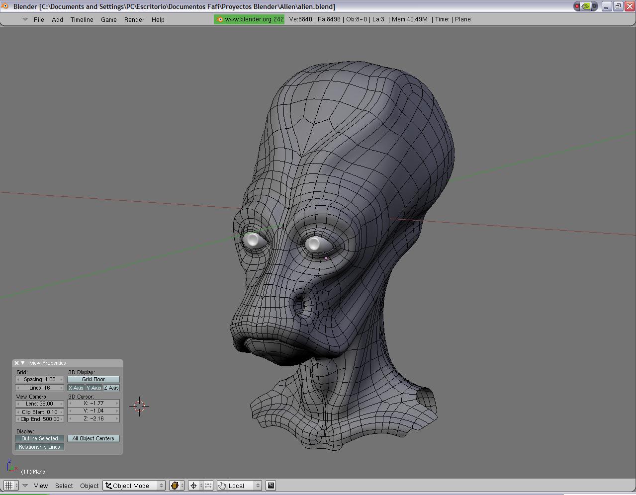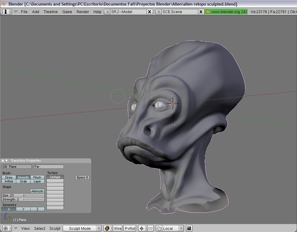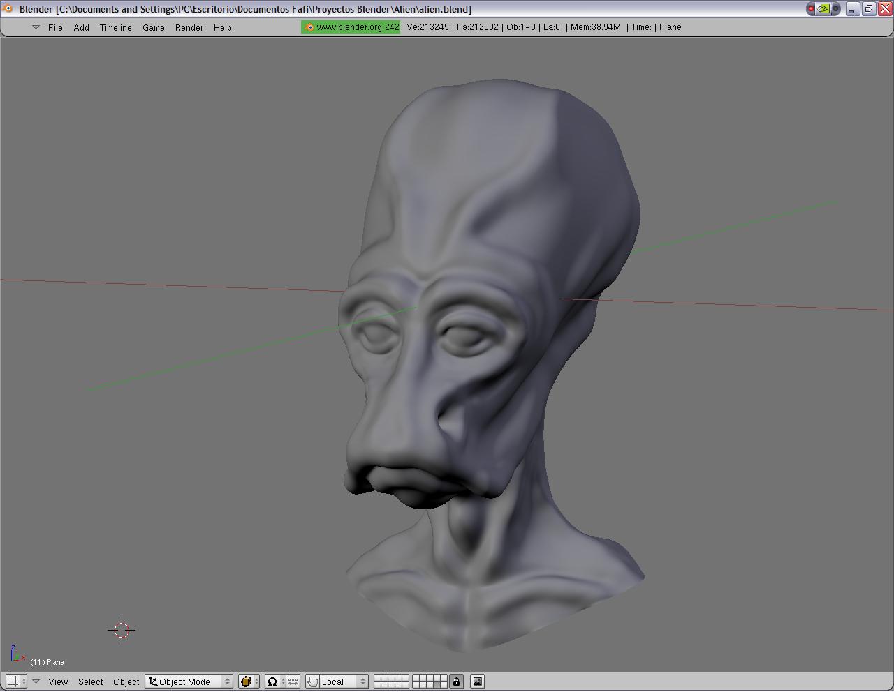 Yeray, te ánimo encarecidamente a que tomes contacto con Blender, cada día que pasa es una herramienta más potente. Respecto a lo que me preguntas, en el viewport se ve razonablemente rápido para esculpir modelos como este, pero desde mi punto de vista tienen que optimizarlo mucho todavía, porque, como decía anteriormente herramientas como el Smooth van bastante lentas a ese grado de detalle (poco menos de 500.000 caras, en un Pentium IV con dos gigas de Ram y una GeForce 6800GS con 256 megas). Respecto a lo del mapa de Bump y desplazamiento, eso esta previsto desarrollar, por ahora la malla es así. Aún le queda bastante por desarrollar para tener la herramienta terminada, pero con lo que tenemos ahora se puede trabajar bastante, bastante bien. Lo comparo, en nivel de acabado, con el Silo 2.0, salvo e que el visor de Silo con este grado de detalle se con más fluidez.