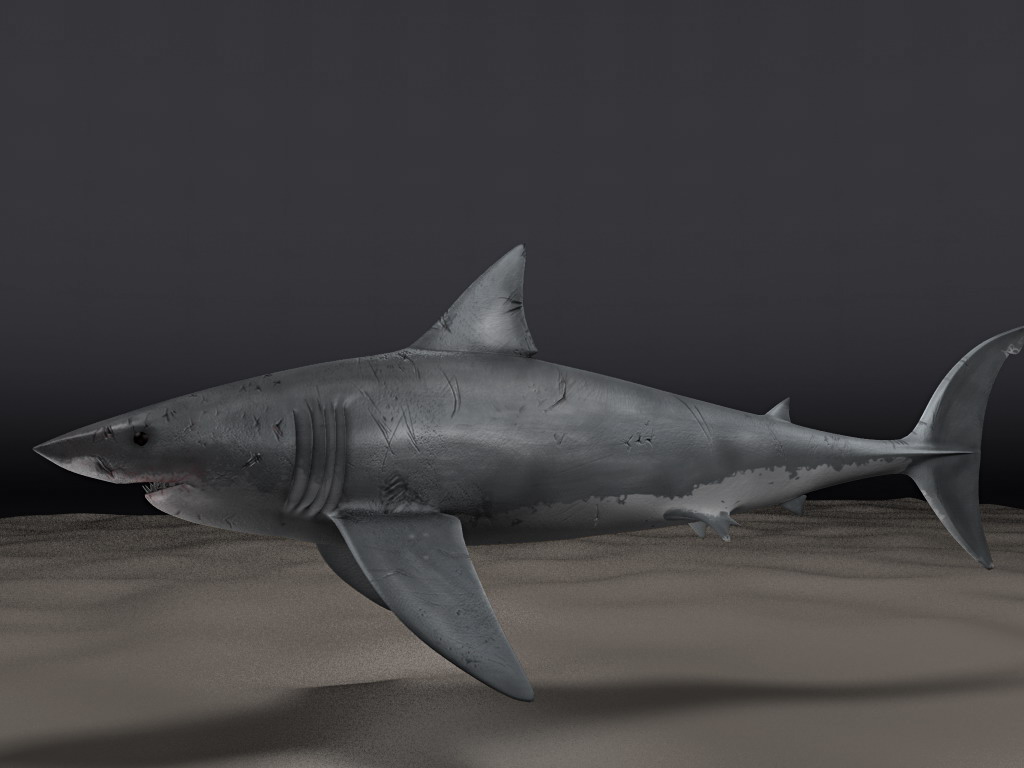 Ya se lo que me choca. Es la simetría del escualo, las aletas deberían ser más asimétricas dándole un aspecto menos artificial.