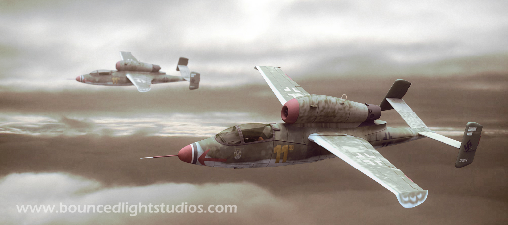 Si no tiene orugas, Karras no lo modela. A propósito del modelo (he 162 salamander) el piloto lo debe haber tenido complicado para saltar en paracaidas, ¿no? Con la turbina arriba de la cabina.