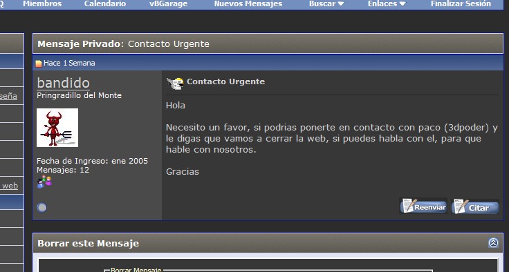 Ostras.Da gusto ver que todo vuelve a la normalidad. Espero curioso esa explicación, porque al entrar me he encontrado un mensaje privado sin leer de la semana pasada y de alguien que no conozco: