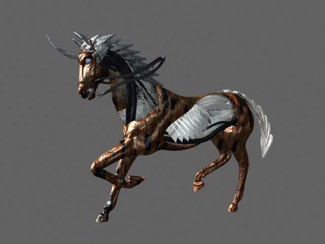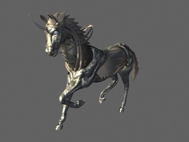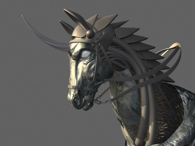 He hecho algunas texturas de la cabeza y el torse del caballo y pondré algunas tomas de varios +ángulos quiero un efecto de metal algo deteriorado, pero sin exagerar. Alguna sugerencia o idea.