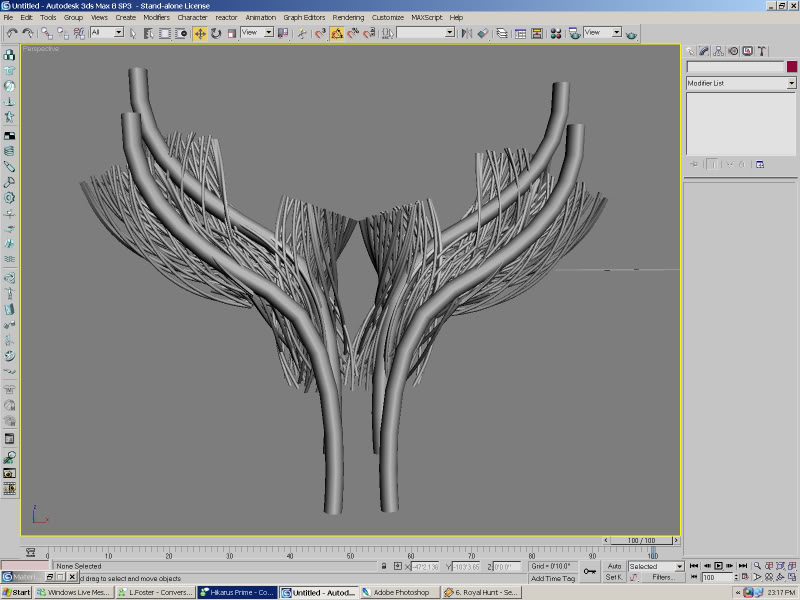 Borré los planos del final, e hice varias copias y usando los modificadores para darle las formas deseadas como las quería, agarré algunas líneas gruesas y algunas cosas orgánicas para darle más detalle.
