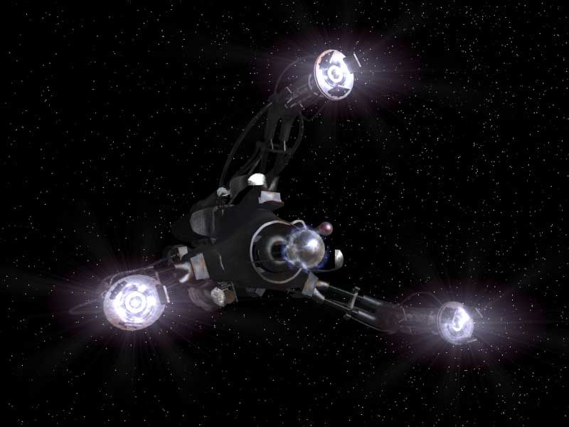Tiene muy buena pinta. Aunque al principio no encontraba el bicho por ningún lado. Resulta que es mecánico. Estaría muy bien verlo animado, seguro que gana mucho con el movimiento. En la última imagen da la sensación de que se mueve tipo calamar, estirando las patas, igual no le llegarían los cables, pero sería una animación muy curiosa para una nave. Saludos.