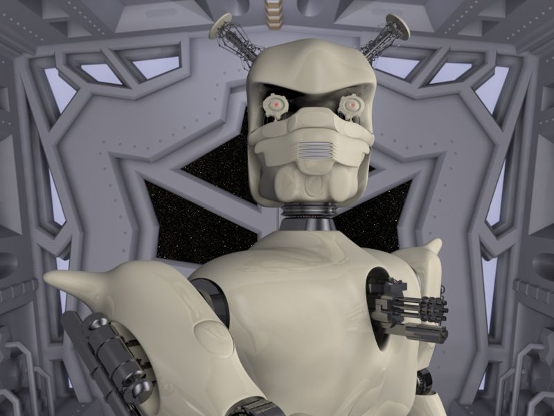 El render está compuesto de dos capas, uno el fondo que es la nave y la otra el robot solo.