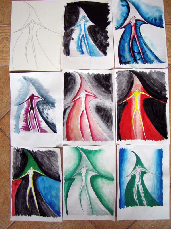 Bueno, pues es un trabajo para clase de pintura, he hecho unos cuantos bocetos, pero no sé cuál elegir para hacer bien y en grande. Saludos.