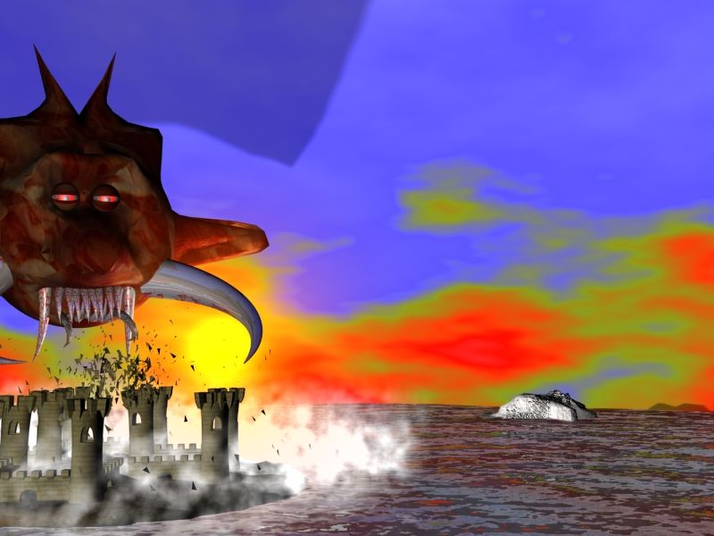 Esos colores del cielo tan vistosos, esa cara de malo tonto típico de las series infantiles, el castillo.