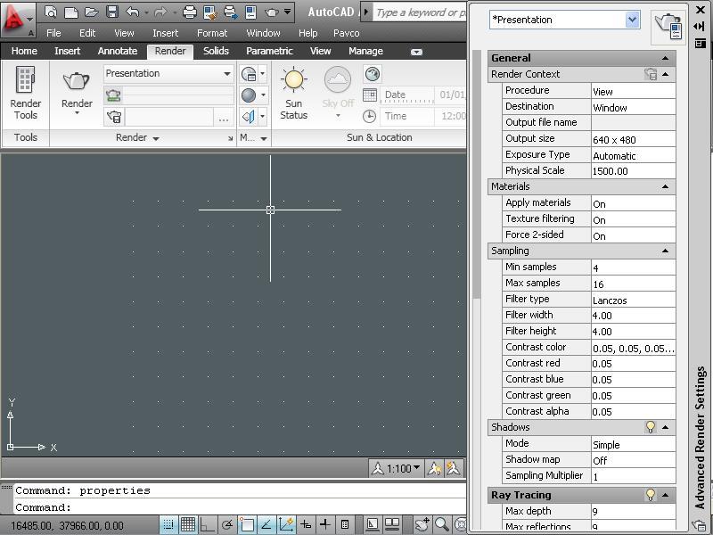 área shadows, advanced Raytraced shadows, Ray Traced shadows: las sombras se generan usando el algoritmo RayTrace de Mental Ray.