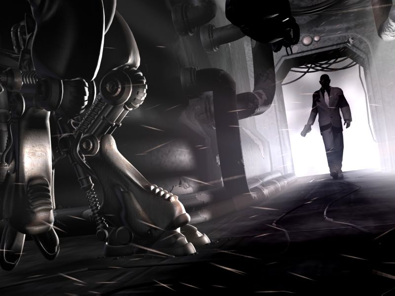 Descripción: la imagen fue creada en principio con dos programas: Poser 4 para la figura humana y 3ds Max 4 para el modelo del robot, el escenario y los accesorios (armas, etc).