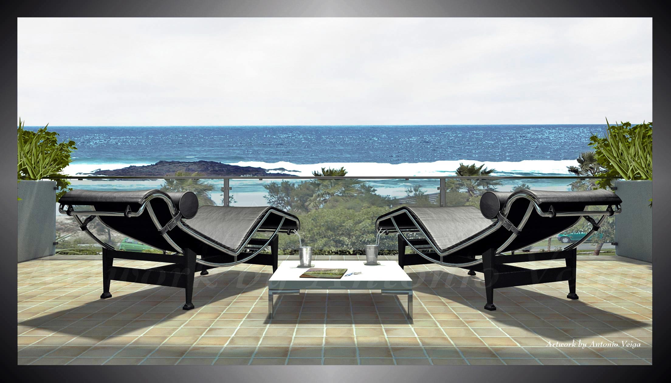 Si le cambias la mesa, y arreglas esos detalles de desfase cromático y buscas darle fuerza a la imagen, sin miedo a los colores, tendrás tus dos tumbonas de revista. La mesa que tienes puesta ahora también perjudica al global. Pero vamos si dejas esa misma, cambiándole la tapa por una fina de cristal tintado podría ser más que suficiente.