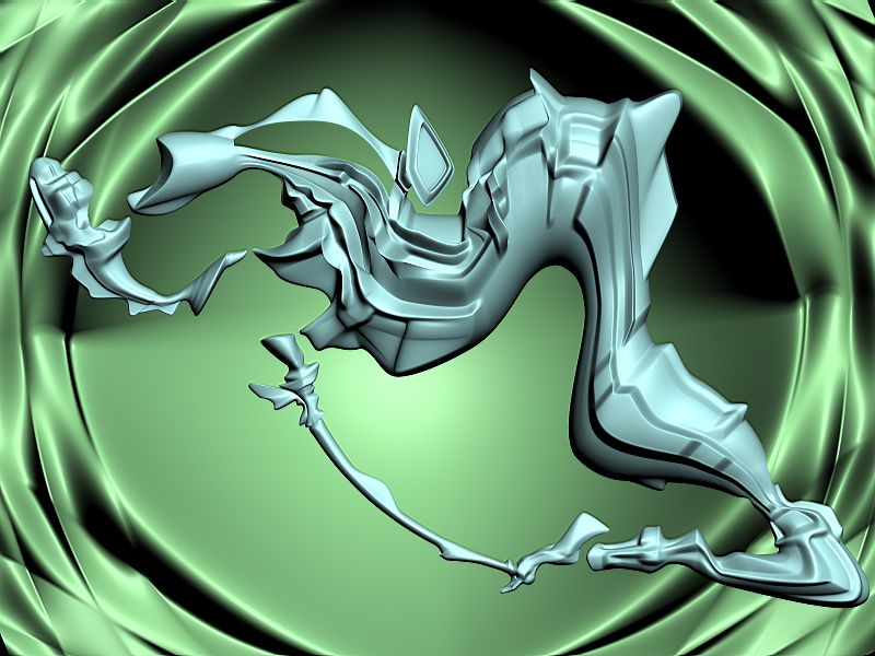 Este es un trabajo realizado en 3dsmax 5 solamente (sin plugins) está hecho con splines y superficie editable (no tuve tiempo para él pues producción ni para el render lo siento). Respecto al trabajo es una escultura virtual que representa, (tal vez) una partícula que vive en el interior de otra partícula, que vive dentro de otra partícula etc. (esto no tiene fin).