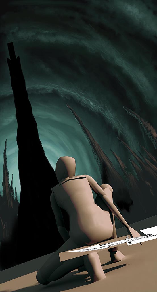 Una de ellas es un simple paisaje, por ahora es tan sólo un sketch. La otra está trabajado el fondo, y ni eso. El personakje que se ve es un Biped del 3dstudio, que le lancé un render para ver las proporciones. Saludos.