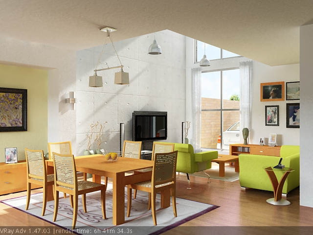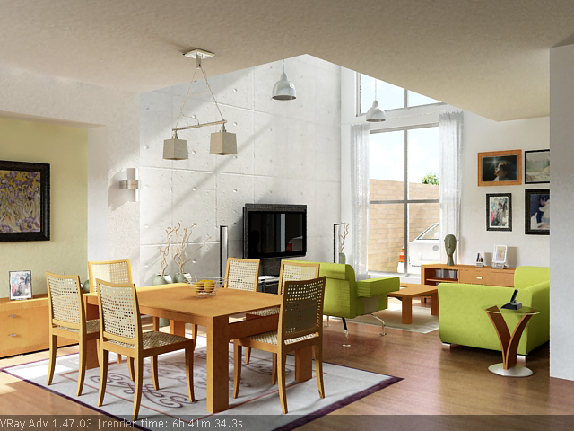 Lo veo estupendo, coincido con Molok que tienes algunos artefactos en las uniones paredes techo y si tu máquina es potente revisaría los setting, es mucho tiempo teniendo en cuenta el tamaño de imagen.