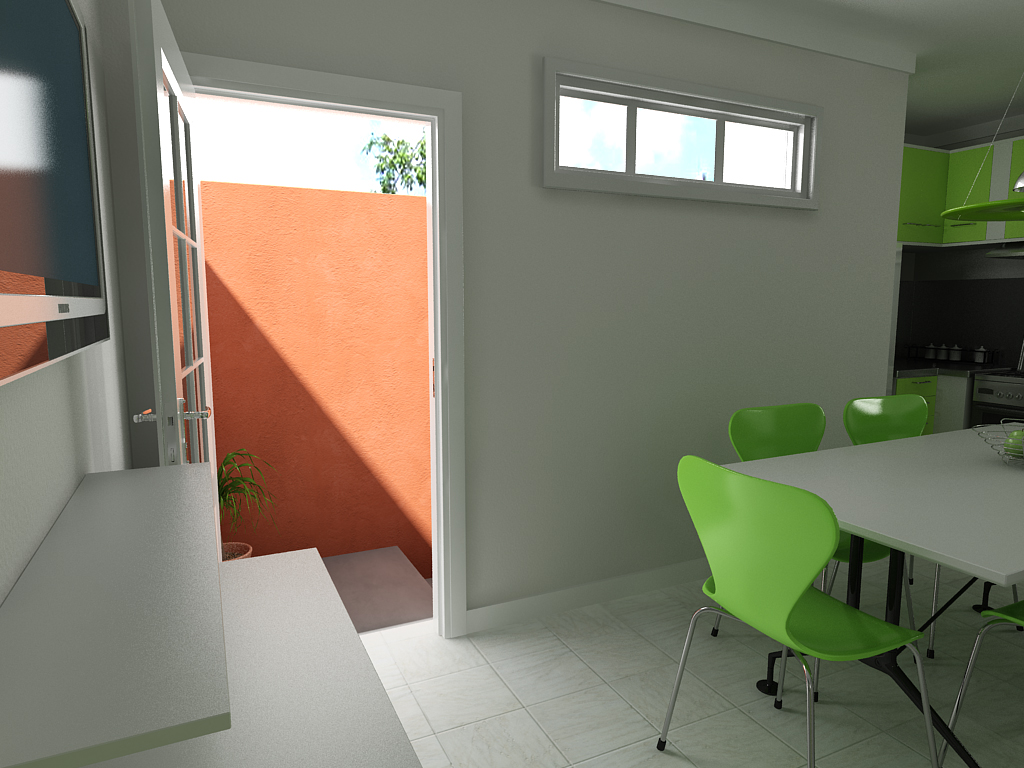 Hola, este es mi primer trabajo de arquitectura, es en espacios reducidos. En total la construcción es de 52m2 y estas son las pruebas de la cocina/comedor. Herramientas max 7 - Vray 1.47 archievermotion (excepto alasenas) y es para simular horarios del día con la luz que trae el 3ds Max llamada Sun. Voy a tratar de generar toda la construcción y medir el nivel de realismo que tiene el Vray antes de que este terminada.