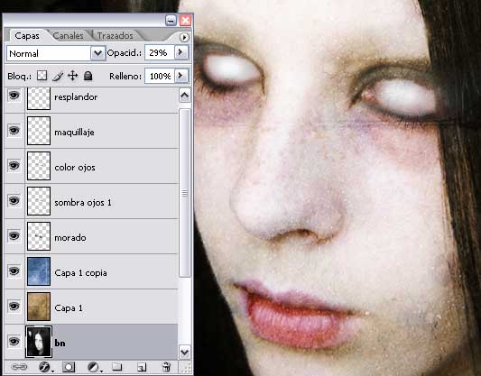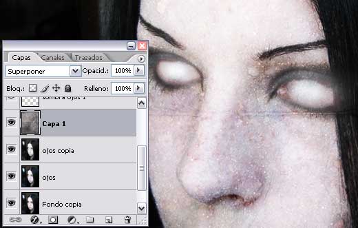 *esta la coloco justo encima de la última capa de imagen o sea ojos copia y ponemos la imagen en modo de superponer con opacidad a 100%.