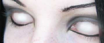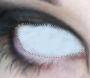 *ahora tomamos la herramienta clonar(s) y comenzamos lo laborioso. Sin hacer aún lado nuestra selección tomamos un sector del lóbulo de lamía y comenzamos a pintar sobre al pupila, haremos esto hasta terminar de cubrir el ojo de blanco, aunque en realidad quedará un tono azuloso y nada agradable todavía.