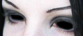 *en la capa sombra ojos 1, tomamos un pincel (normal con los bordes difuminados con 17 px de ancho. Pintamos sobre el ojo, y lo rellenamos de color negro, lo mismo para ambos ojos.