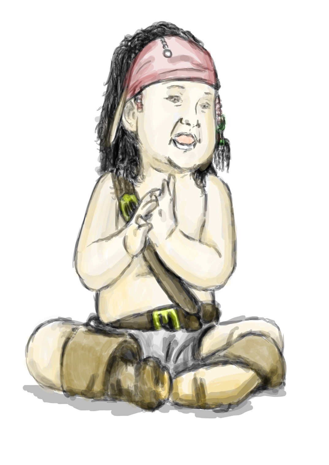 Aquí dejo un dibujo que aún está en proceso. Tengo la intención de hacer un montón de personajes de películas siguiendo este modelo, que sean bebés. Aquí tenéis al primero, fácilmente reconocible, ahora solo me falta colorearlo.