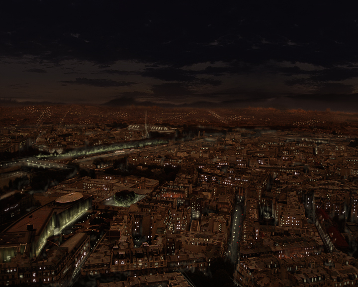 Hola. Estoy haciendo un fondo para unas nubecillas. Cualquier consejo es bienvenido. Antes de freirme, tened en cuenta que se verá con un poco de niebla debido a las nubes, las luces están ligeramente animadas, aunque he puesto un fotograma fijo.