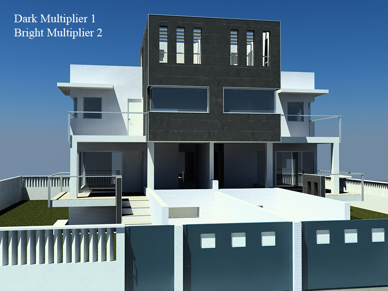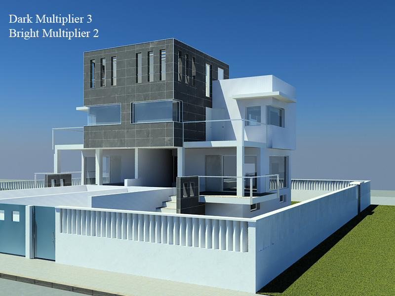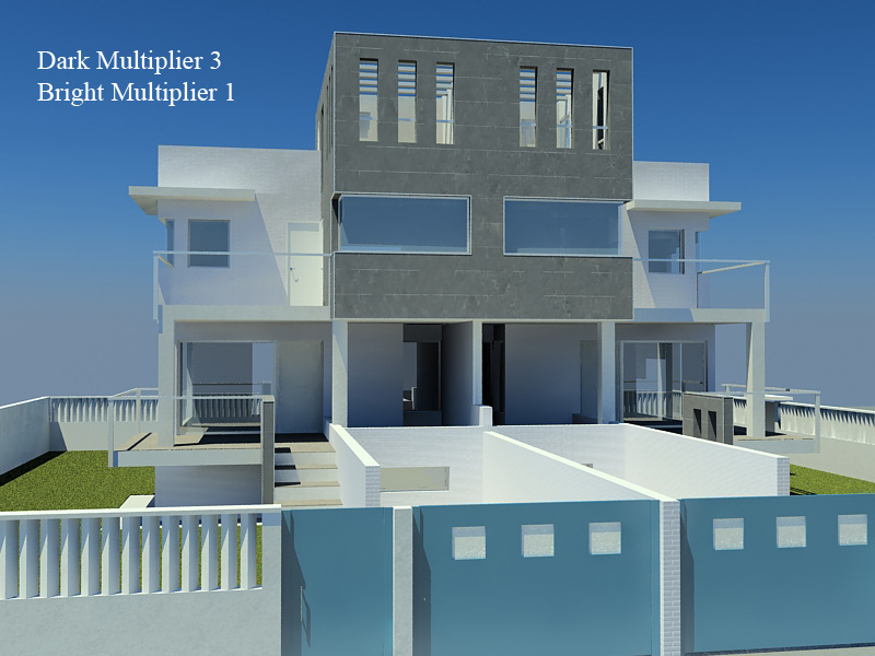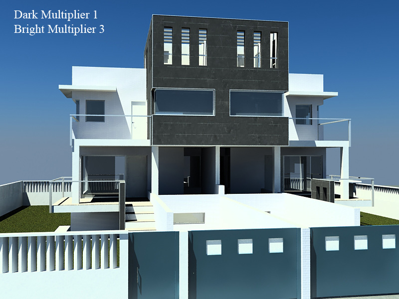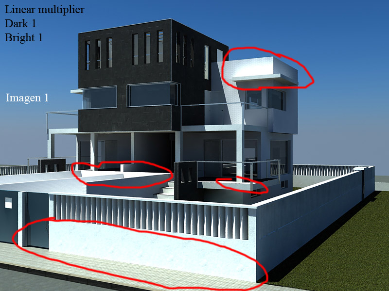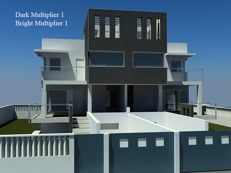 De todas manera me gustaría que me comentaseis como la veis, es decir, veo que la luz está muy amarillenta o que en algunas partes se ve como verdoso, sabéis a lo que me refiero ¿no? Venga gracias, os subo unos renders para que veáis como afecta el dark y bright multipier.