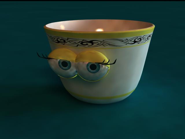 Estás animando una taza con una textura bastante cuidada, un material Blend que combina un V-Ray para simular porcelana, un dibujo amarillo decorativo y una máscara de opacidad. Todo va perfecto hasta que aplicas un FFD (Free Form Deformer) y haces el bind entre el FFD y el modelo. En ese momento, el material se rompe, la taza se pone negra y desaparece toda la información de textura como si estuviera rota.